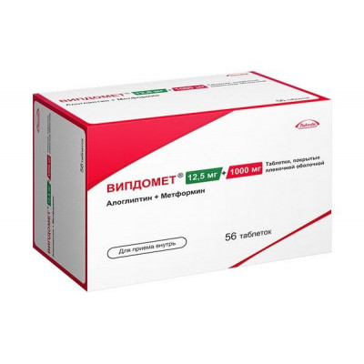 Препарат Випдомет® представляет собой комбинацию двух гипогликемических средств с взаимодополняющими и разными механизмами действия, предназначенную для улучшения контроля гликемии у пациентов с сахарным диабетом 2 типа: алоглиптина, ингибитора фермента дипептидилпептидазы-4 (ДПП-4), и метформина, представителя класса бигуанидов.