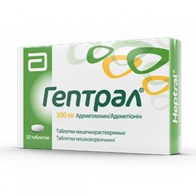 Терапия препаратом Гептрал® может быть начата с в/в или в/м введения с последующим применением препарата Гептрал® в виде таблеток или сразу с применения препарата Гептрал® в виде таблеток.