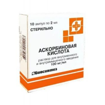 АСКОРБИНОВАЯ К-ТА 100МГ/МЛ. 2МЛ. №10 Р-Р Д/В/В,В/М АМП. /БИОСИНТЕЗ/