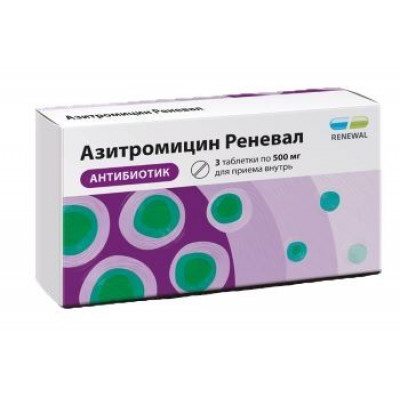АЗИТРОМИЦИН РЕНЕВАЛ 500МГ. №3 ТАБ. П/П/О /ОБНОВЛЕНИЕ/