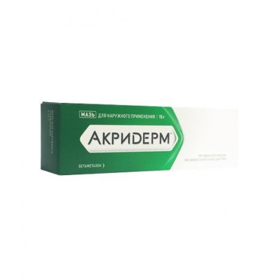 Акридерм® — глюкокортикостероид для наружного применения. Оказывает противовоспалительное, противоаллергическое, антиэкссудативное, сосудосуживающее, противозудное и антипролиферативное действие. Тормозит накопление лейкоцитов, высвобождение лизосомальных ферментов и провоспалительных медиаторов в очаге воспаления, угнетает фагоцитоз, уменьшает сосудисто-тканевую проницаемость, препятствует образованию воспалительного отека