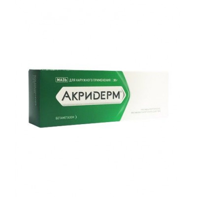 Акридерм® — глюкокортикостероид для наружного применения. Оказывает противовоспалительное, противоаллергическое, антиэкссудативное, сосудосуживающее, противозудное и антипролиферативное действие. Тормозит накопление лейкоцитов, высвобождение лизосомальных ферментов и провоспалительных медиаторов в очаге воспаления, угнетает фагоцитоз, уменьшает сосудисто-тканевую проницаемость, препятствует образованию воспалительного отека