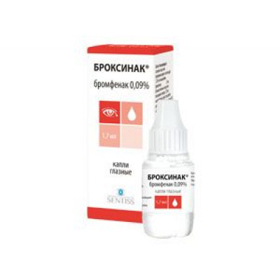Повышенная чувствительность к компонентам препарата, а также к другим нестероидным противовоспалительным препаратам. Применение препарата противопоказано у пациентов, у которых приступы бронхиальной астмы, крапивницы и симптоматика острого ринита, усиливаются при приеме ацетилсалициловой кислоты и других НПВП. Возраст до 18 лет (безопасность и эффективность применения препарата у детей не исследовались). С ОСТОРОЖНОСТЬЮ: Содержащийся в препарате сульфит натрия может вызывать аллергическую реакцию, включая анафилактический шок, приступы астмы у восприимчивых людей. Чувствительность к сульфитам повышена у лиц с бронхиальной астмой и аллергическими реакциями в анамнезе. При применении препарата Броксинак® существует возможность развития перекрестной чувствительности к ацетилсалициловой кислоте, производным фенилацетиловой кислоты, а также другим НПВП. Необходимо соблюдать осторожность при лечении лиц, у которых ранее выявлялась чувствительность к этим препаратам. НПВП могут увеличивать время кровотечения в результате нарушения агрегации тромбоцитов. Применение местных НПВП в сочетании с офтальмологическими операциями может повысить кровоточивость тканей глаза (в том числе в передней камере глаза). Броксинак® должен применяться с осторожностью у пациентов, в анамнезе которых зафиксирована склонность к кровотечению, или если пациенты получают другие лекарственные препараты, которые могут повышать время свертываемости крови. Опыт применения местных НПВП показывает, что пациенты с осложнениями после хирургических офтальмологических вмешательств, денервацией роговицы, дефектами эпителия роговицы, сахарным диабетом, поверхностными заболеваниями глаз (например, синдром «сухого глаза»), ревматоидным артритом или повторными хирургическими вмешательствами, проведенными в течение короткого промежутка времени, могут иметь повышенный риск развития побочных реакций со стороны роговицы.