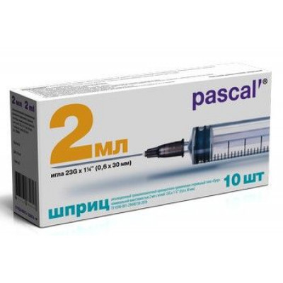 ПАСКАЛЬ ШПРИЦ 3-Х КОМП. 2МЛ. С ИГЛОЙ 23G 0,6Х30ММ. №10 [PASCAL]