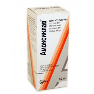 АМОКСИКЛАВ 125МГ.+31,25МГ/5МЛ. 25Г. 100МЛ. ПОР. Д/СУСП. Д/ПРИЕМА ВНУТРЬ ФЛ. +ПИПЕТ.ДОЗИР. /ЛЕК/