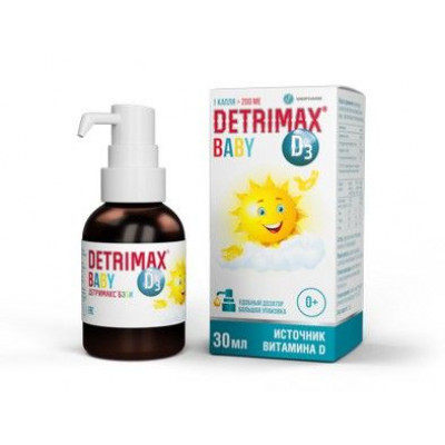 ДЕТРИМАКС® БЭБИ cодержит витамин D3 (холекальциферол) – жизненно важный жирорастворимый витамин, необходимый для обеспечения деятельности практически всех органов и систем человеческого организма.