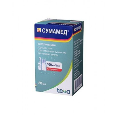 СУМАМЕД 100МГ/5МЛ. 20,925Г. 20МЛ. КЛУБНИКА №1 ПОР. Д/СУСП. Д/ПРИЕМА ВНУТРЬ ФЛ. (17Г/23МЛ.) /ПЛИВА/