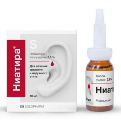 Препарат Ниатира® применяют у взрослых и детей по показаниям: - острый наружный отит; - обострения хронического среднего отита (в том числе при наличии стойкой перфорации барабанной перепонки); - состояния после оперативных вмешательств на среднем ухе.