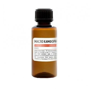 Действующее вещество: Камфоры 100 г. Вспомогательное вещество: Масла подсолнечного рафинированного до 1л.