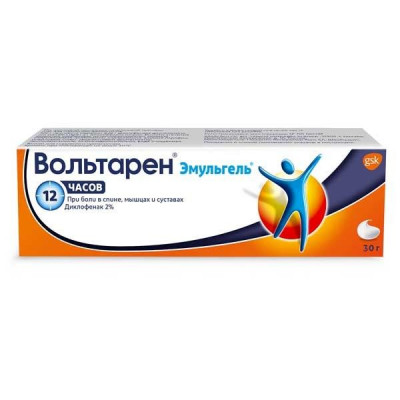 НПВП для наружного применения. Диклофенак обладает выраженным анальгезирующим и противовоспалительным и жаропонижающим действием. Неизбирательно угнетая ЦОГ-1 и ЦОГ-2, нарушает метаболизм арахидоновой кислоты. Вольтарен® Эмульгель® используется для устранения болевого синдрома и воспаления в суставах, мышцах и связках травматического или ревматического происхождения, способствуя уменьшению боли и отечности, связанной с воспалительным процессом, увеличивая подвижность суставов. Благодаря своей водно-спиртовой основе Вольтарен® Эмульгель® оказывает успокаивающий и охлаждающий эффект.