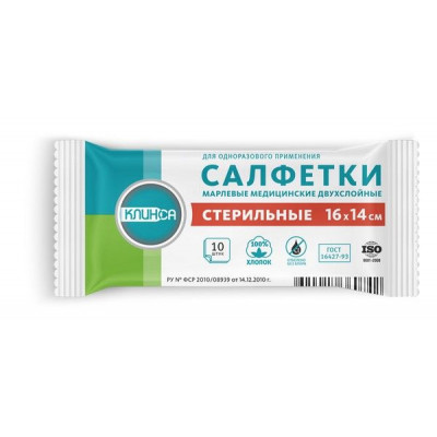 КЛИНСА САЛФЕТКИ МЕД.СТЕР. 16Х14СМ. №10
