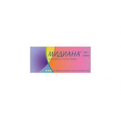 Препарат Мидиана® — это комбинированный пероральный контрацептив, содержащий этинилэстрадиол и дроспиренон. В терапевтической дозе дроспиренон также обладает антиандрогенными и слабыми антиминералокортикоидными свойствами. Он лишен какой-либо эстрогенной, глюкокортикоидной и антиглюкокортикоидной активности. Это обеспечивает дроспиренону фармакологический профиль, сходный с натуральным прогестероном.