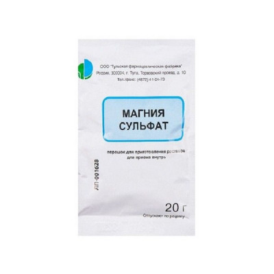 МАГНИЯ СУЛЬФАТ 20Г. №1 ПОР. Д/Р-РА Д/ПРИЕМА ВНУТРЬ ПАК. /ТУЛЬСКАЯ ФФ/