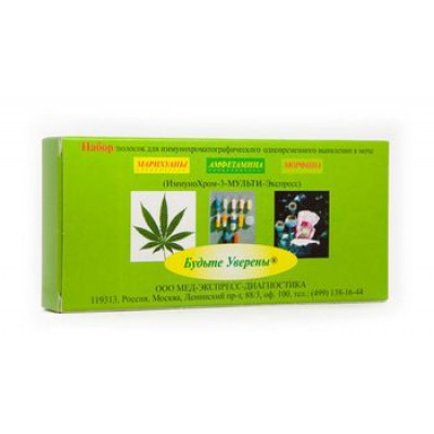 Набор полосок ИммуноХром-3-МУЛЬТИ-Экспресс предназначен для in vitro одноэтапного быстрого качественного одновременного определения амфетамина, морфина и марихуаны в моче человека методом иммунохроматографического анализа.