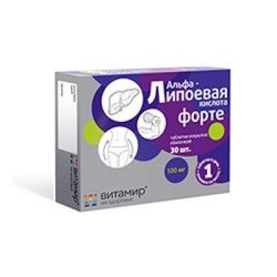 ВИТАМИР АЛЬФА-ЛИПОЕВАЯ КИСЛОТА ФОРТЕ 100МГ. №30 ТАБ. /КВАДРАТ-С/
