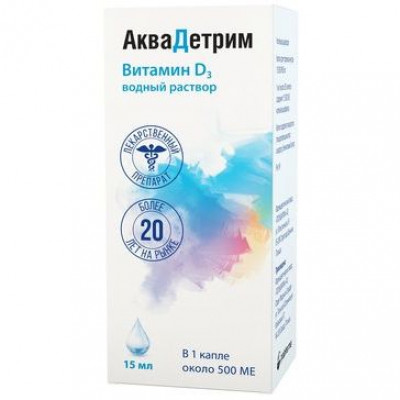 АКВАДЕТРИМ 15000МЕ/МЛ. 15МЛ. КАПЛИ Д/ПРИЕМА ВНУТРЬ ФЛ./КАП. (ВИТАМИН Д3 ВОДН.Р-Р) /ПОЛЬФАРМА/
